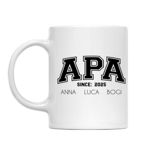 Az egyedi Apa és a gyerekek felirat – MyLife egy személyre szabható minta, amely az apaságot ünnepli egyszerű, mégis szívhez szóló módon. A mintát egyedileg személyre szabhatod a gyerekek neveivel és az apaság kezdetének évével, így egy igazán egyedi ajándék készíthető belőle akár apák napjára is!