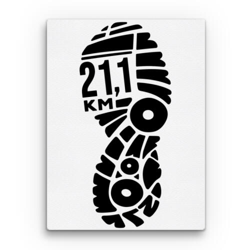 Ez a „Félmaraton lefutva – 21,1 km” grafika igazi jelképe a kitartásnak és a célba érés örömének. A cipőtalp-lenyomat formája tökéletesen szimbolizálja a futás útját, benne a klasszikus félmaratoni távval. Egy ilyen minta nemcsak a teljesítményedet örökíti meg, hanem motiváció is minden további futáshoz.