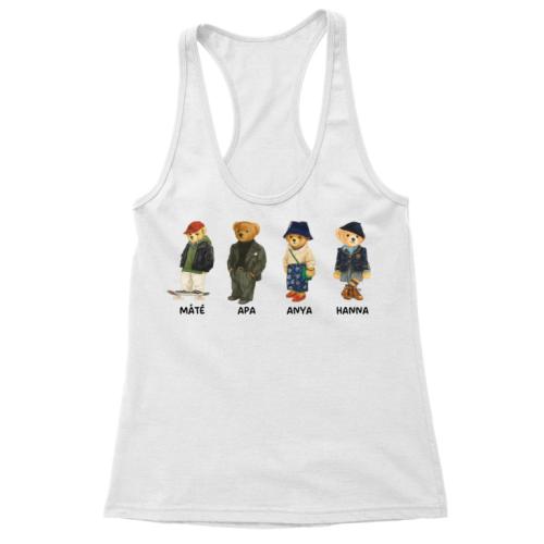 A mintát kérheted pólóra, pulóverre, bögrére, vászonképre, iPhone / Samsung / Huawei / Xiaomi telefontokra, baba bodyra, tornazsákra, párnahuzatra, V-nyakú pólóra vagy trikóra is – így mindenki megtalálja a hozzá legjobban illő terméket. A kedves rajzos grafika digitális nyomtatással készül, hogy a részletek élénkek és tartósak legyenek. A minta személyre szabható: többféle maci közül választhatsz, és saját névvel kérheted.